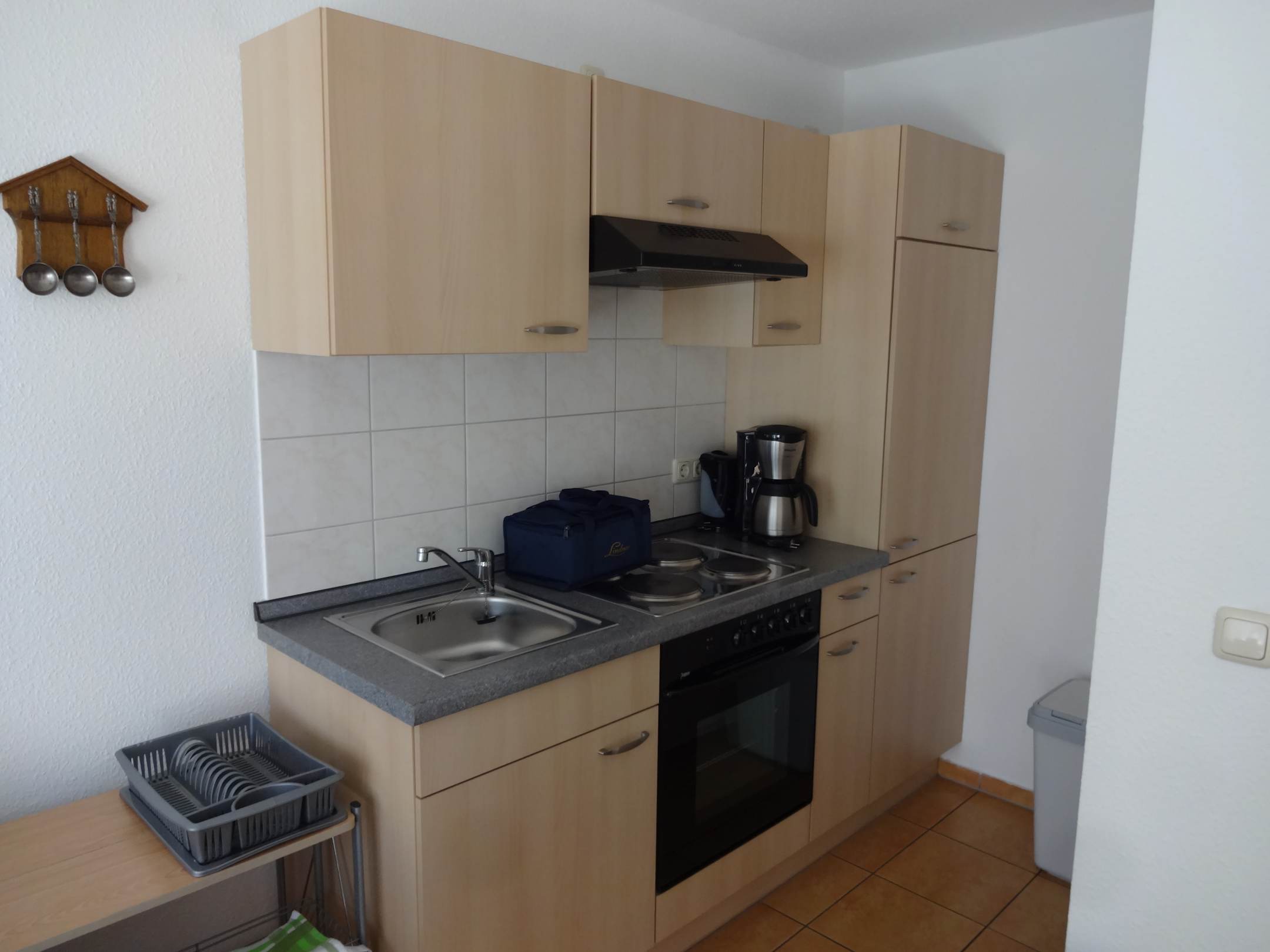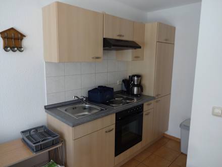 Kochnische mit Kühlschrank, Gefrierfach, Wasserkocher, Kaffeemaschine, Backofen u.s.w.