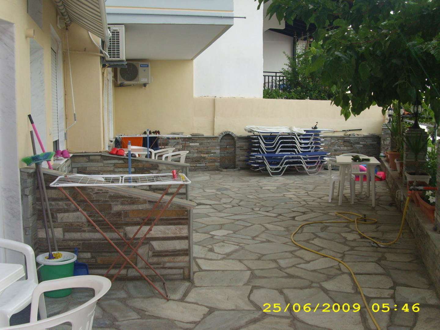Die unteren 3 Appartments haben jeweils eine Terrasse, die anderen 3 Appartments einen Balkon. Hier auf der Terrasse hat jedes Appartment einen Wäscheständer.