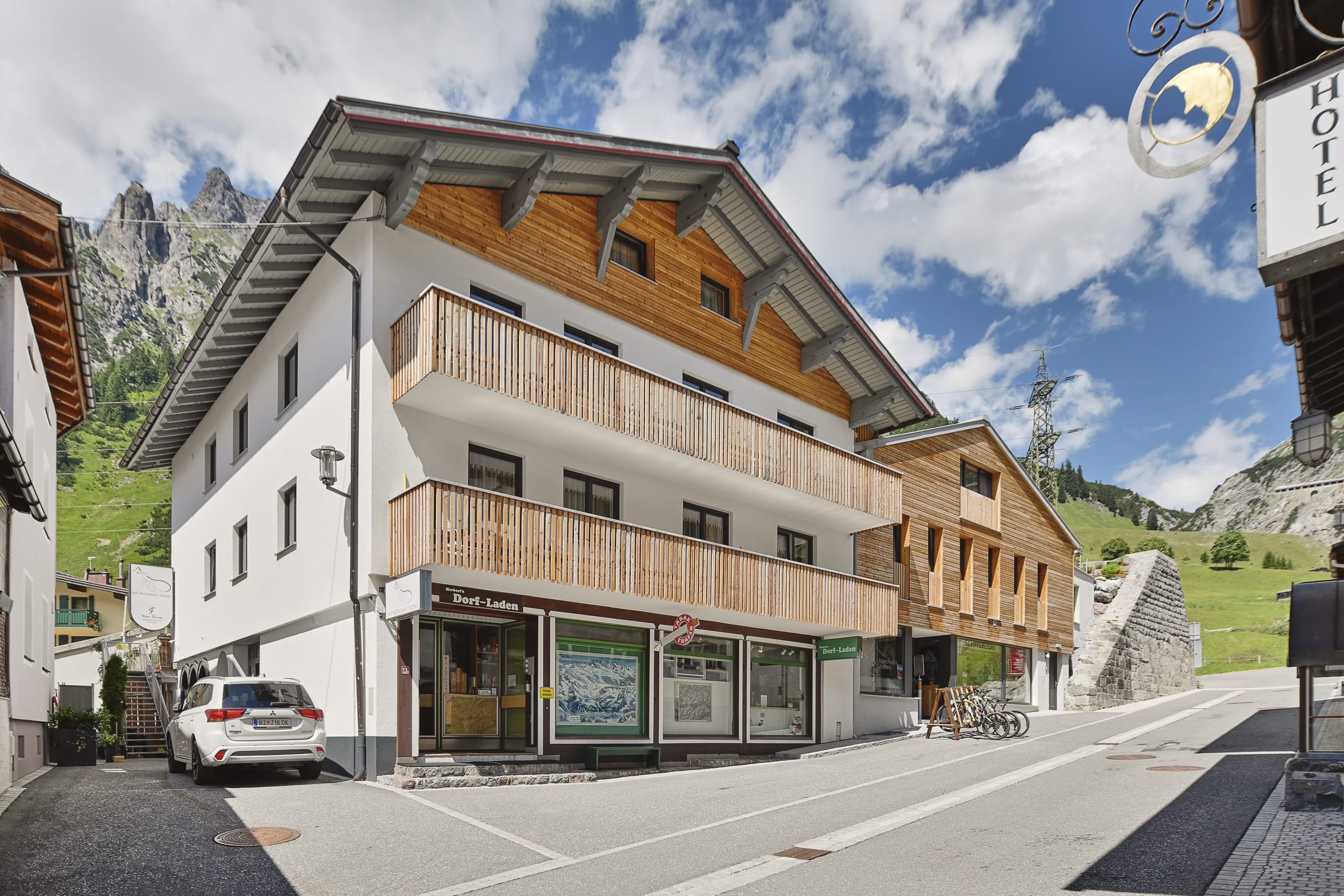 AußenansichtDorfseite mit Dorfladen und Stuben Guides/Shop