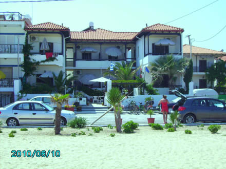 Die Sicht vom Strand auf das Haus Sofia