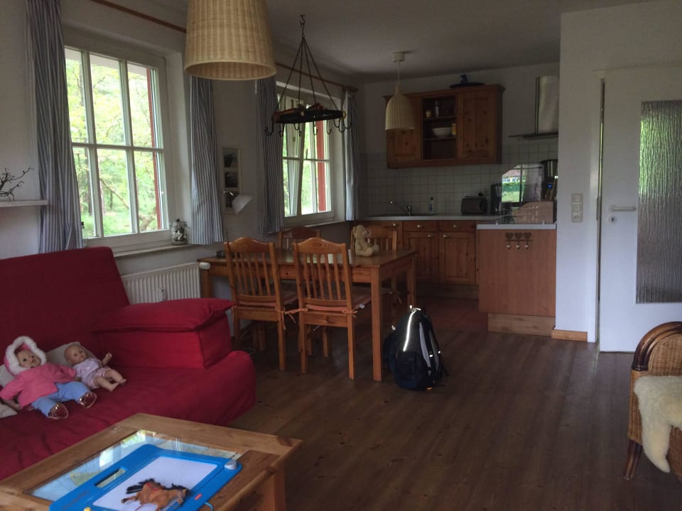 Blick von der Terrasse in den Wohn- und Kochbereic