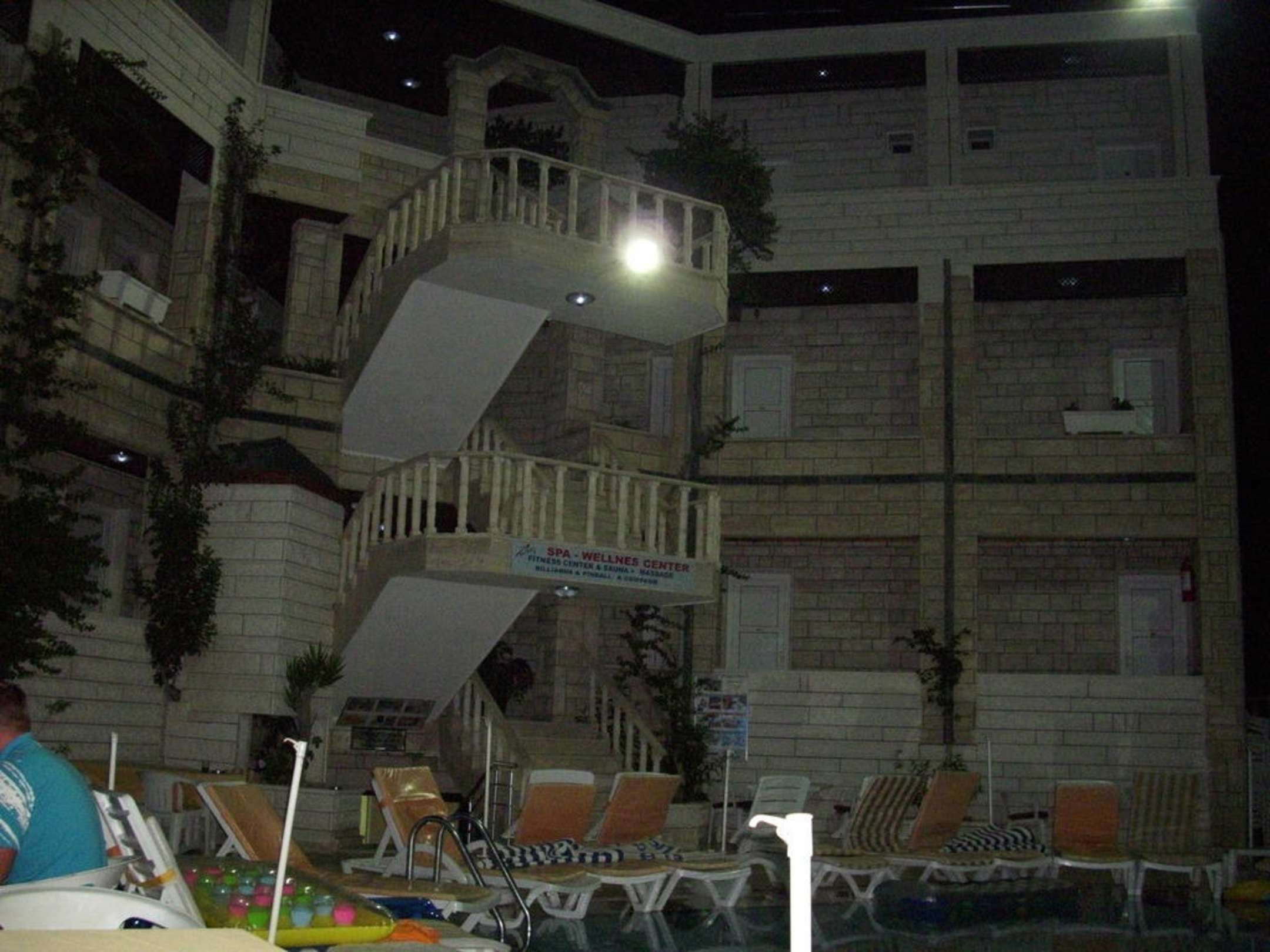 Blick vom Pool zum Hotel