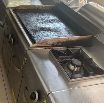 Ich habe noch nie in meinem Leben so eine verdreckte herdplatte gesehen. Da wird Fleisch, Gemüse, Spiegeleier gemacht, also alles durcheinander aber nicht gesäubert. Es kann zu Magendarm Problemen führten.