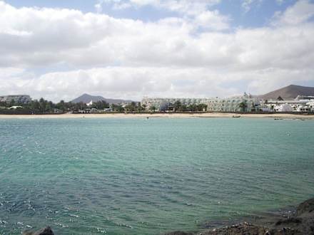 Hotelstrand vom Wasser aus, bei Flut
