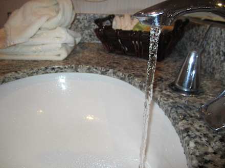 Wasserstrahl am Rand des Beckens!