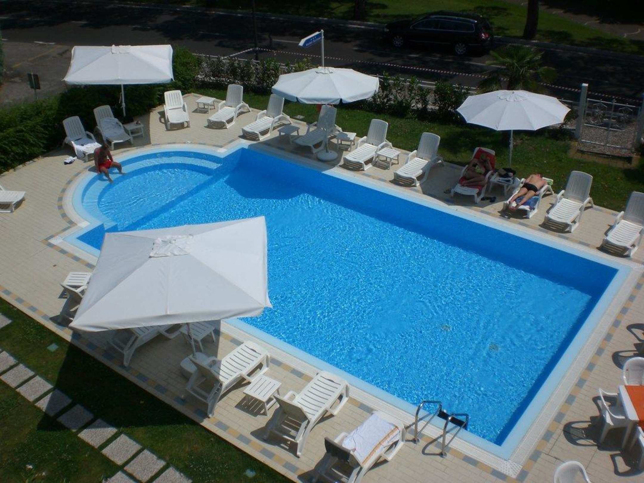 Sie sehen hier den Pools des Hotels, der tiptop sauber gehalten wird. Leider gibt es keine Auflagen auf den Liegen, das macht die ganze Sache etwas unbequem.