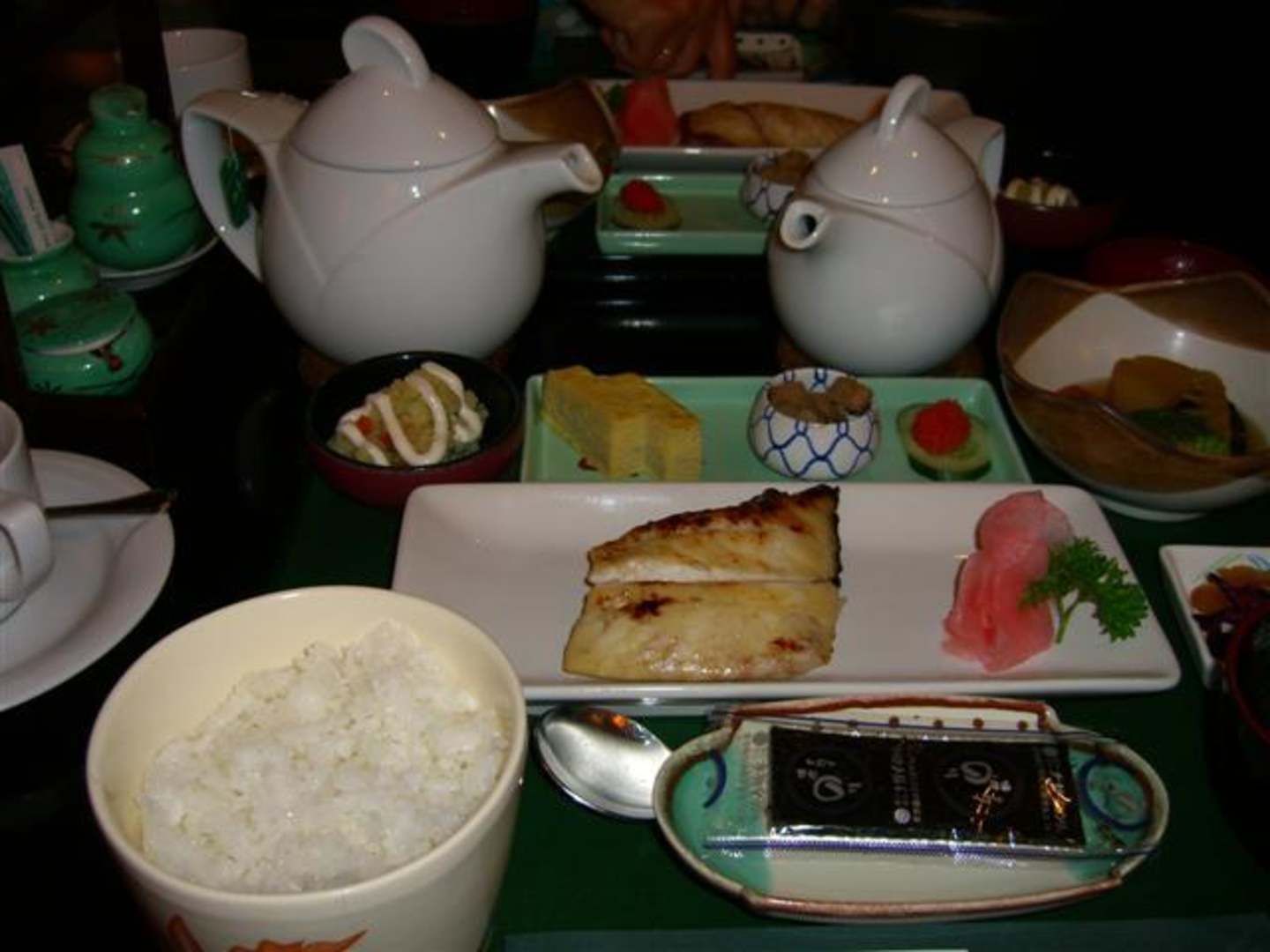 Frühstücksmenü im Japanischen RestaurantMan kann aus zwei Menüs wählen. Viel Fisch und alles warm zubereitet.