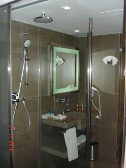 Bad mit Glaswand mit Rollo zum Schlafzimmer