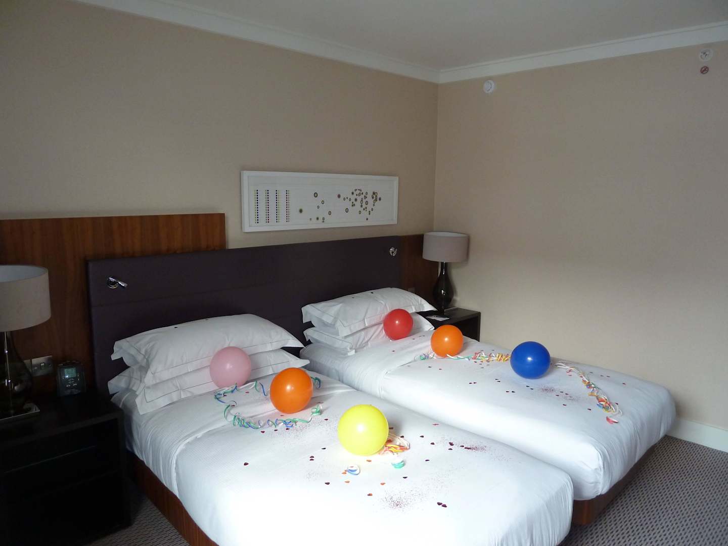 Bett mit Geburtstags Dekoration Hilton London Wembley