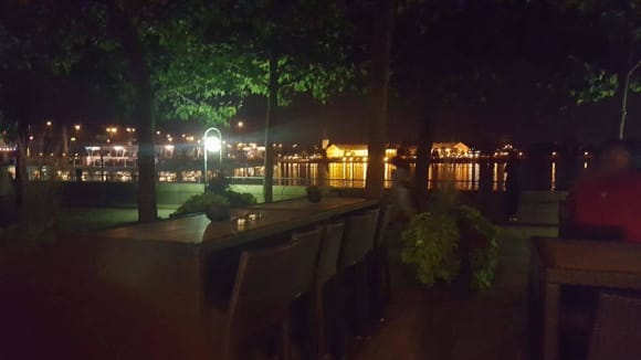 Terrasse Hilton Mainz bei Nacht