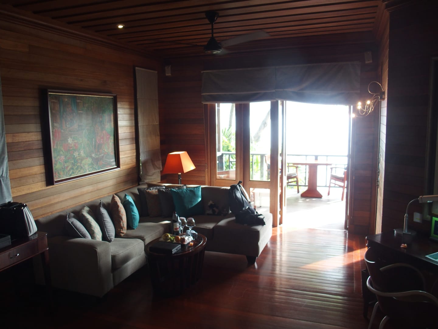 Couchbereich und Blick auf den Balkon