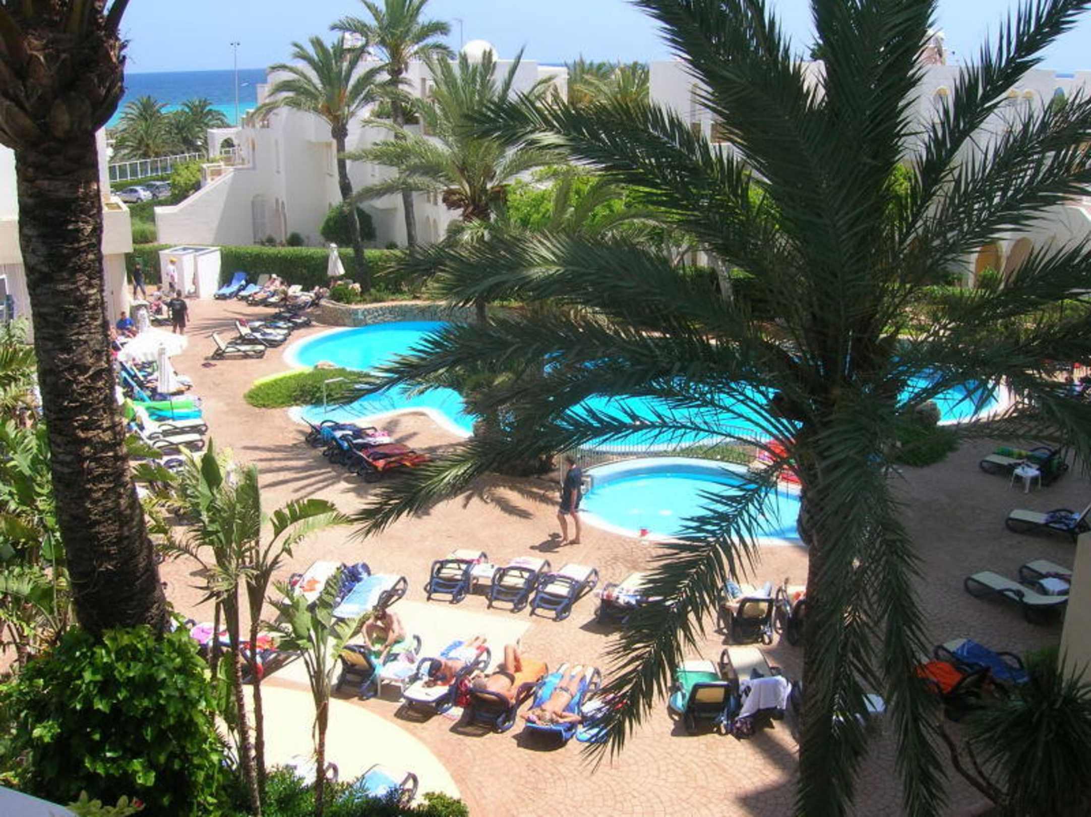 Blick von der Dachterrasse auf den Pool