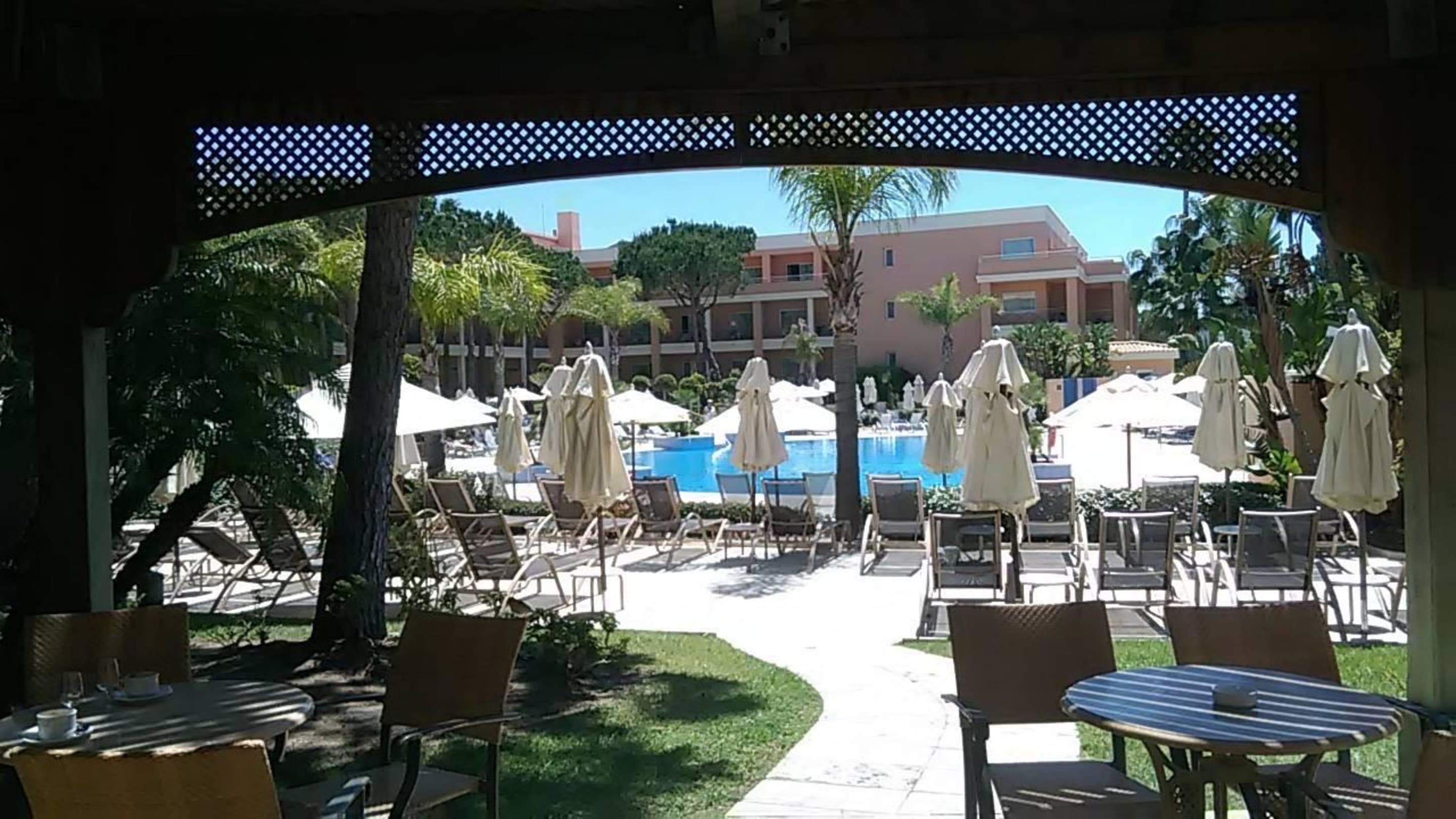 Blick zum Pool von der Bar