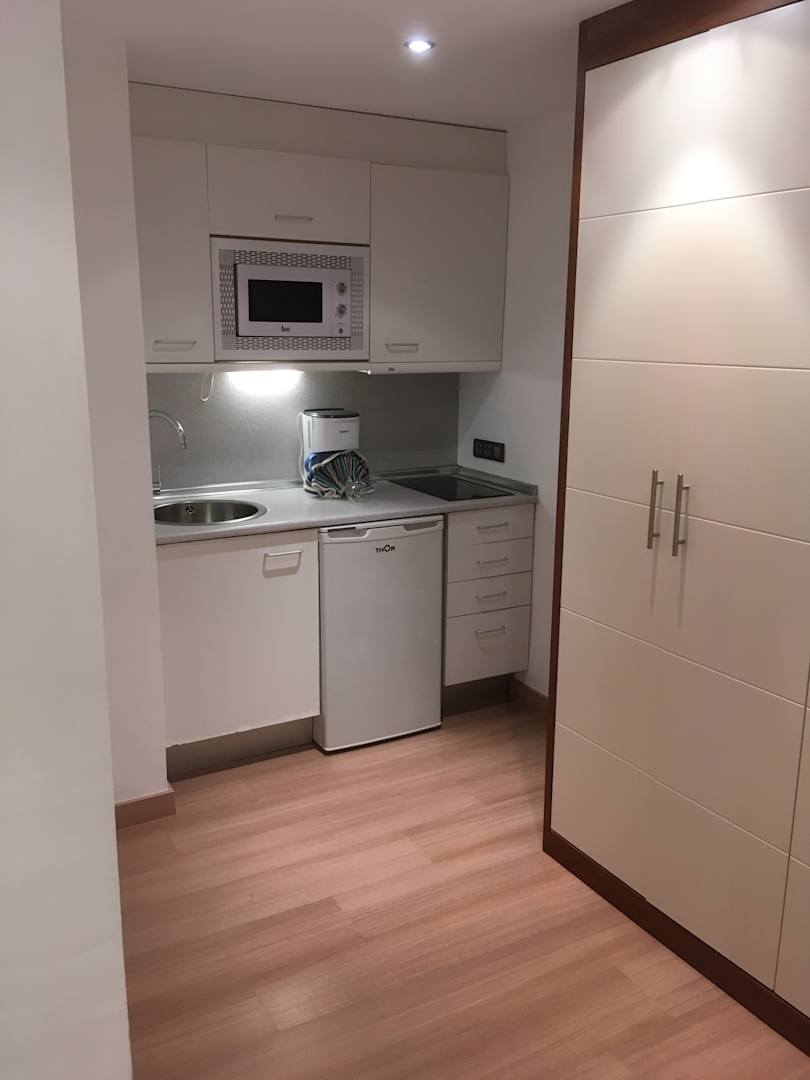Miniküche mit Kühlschrank im Familienzimmer