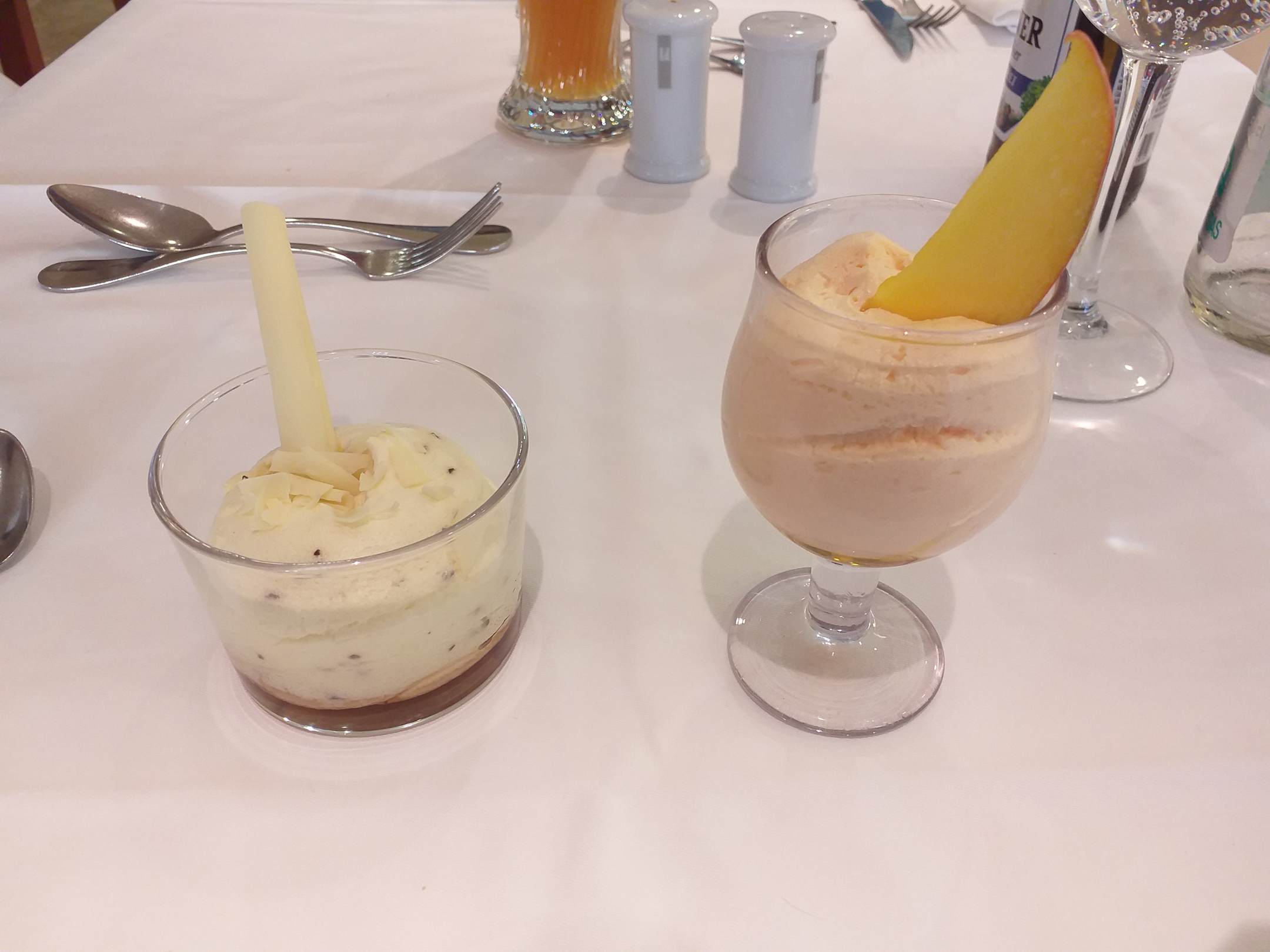 Weißes Schokomouse mit dunklen Schokosplittern, Mangomouse mit einer aromatischen Mango <3