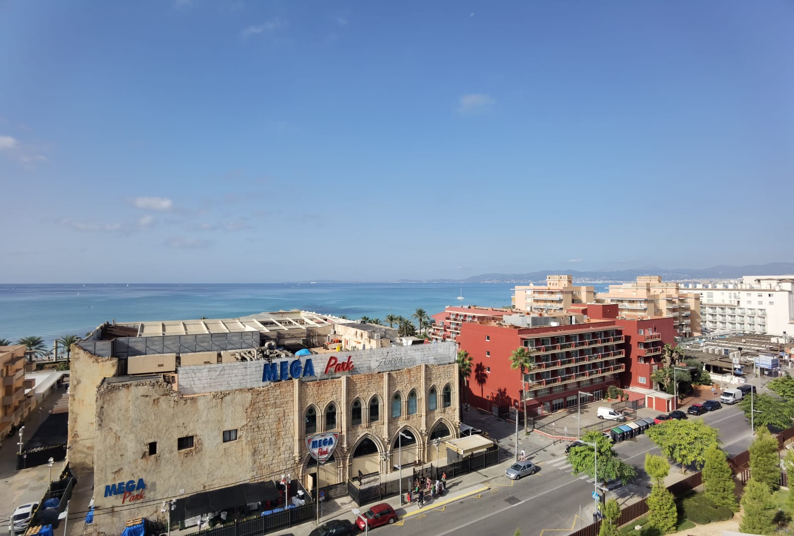 Dies ist die Aussicht aus einer Suite in der 6ten Etage. Meerblick schön, allerdings ist die Straße mit der direkten Bushaltestelle doch sehr laut. Ob man den Megapark von oben so sehen möchte, kann dann wieder jeder selbst Werten.