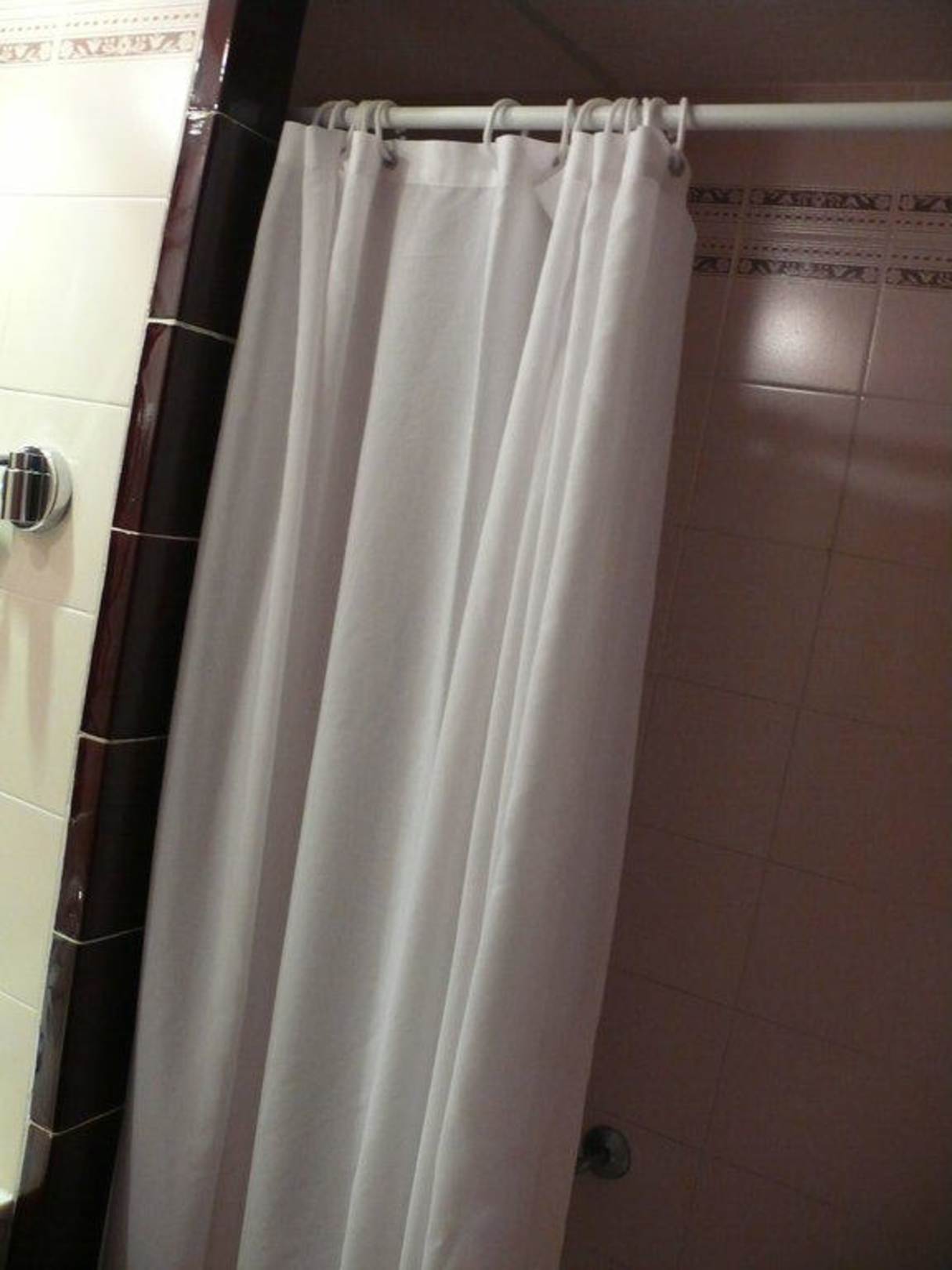 Uralter Duschvorhang im Badezimmer Zimmer 414