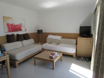 Wohnbereich mit zwei Sofas die zu Betten umfunktioniert werdcen können