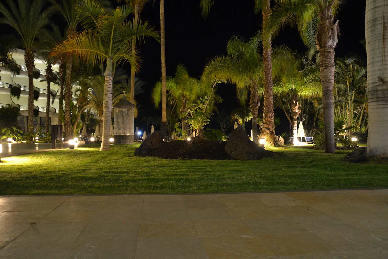 Gartenanlage in der Nacht