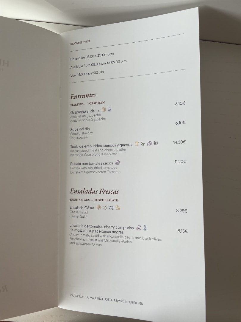 Karte Zimmerservice