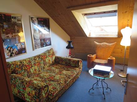 "Musikzimmer" mit Plattencovern und Stones-Text