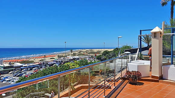 Aussicht auf Playa del Ingles von der Dach-Terrasse