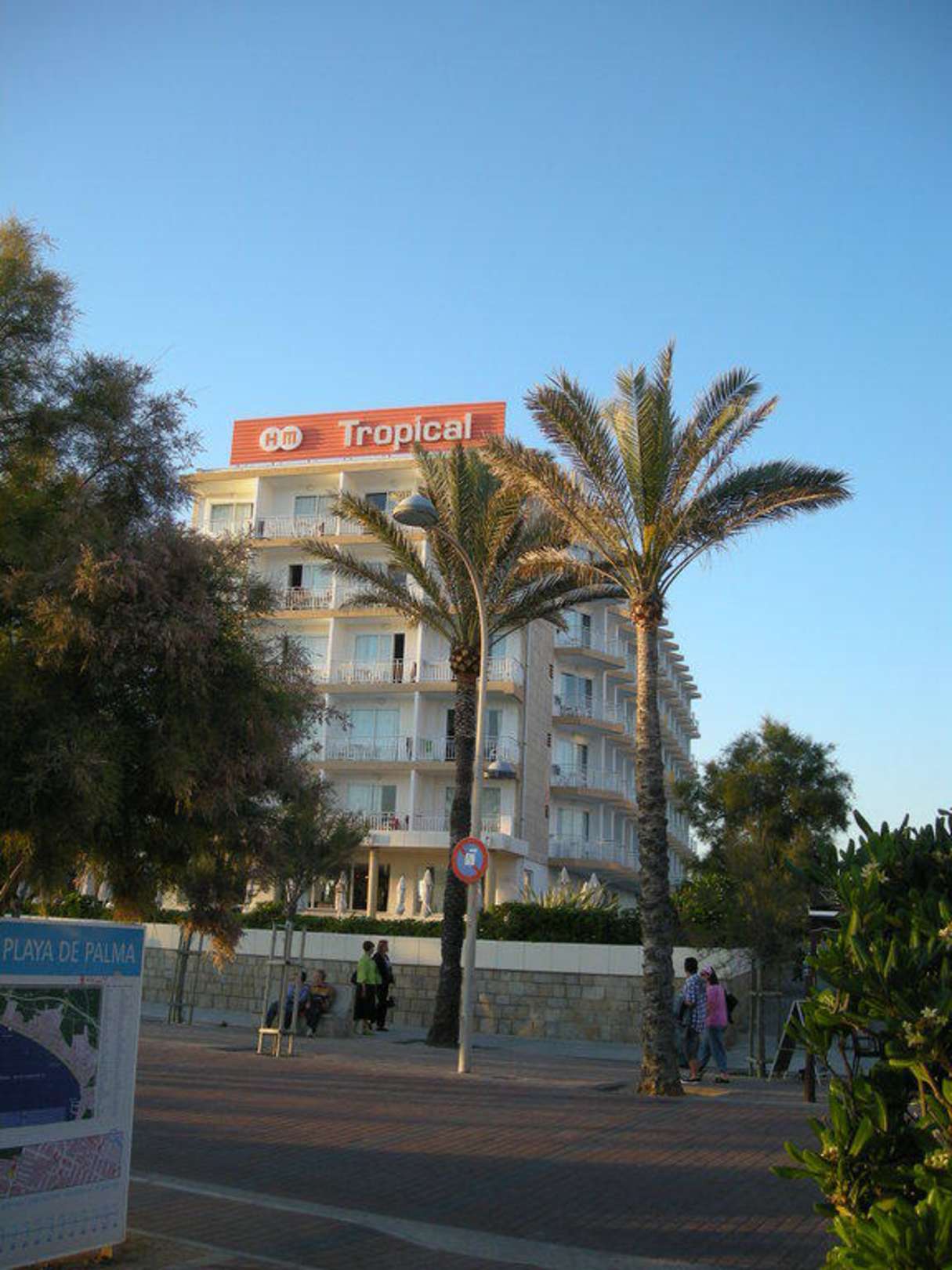 Das Hotel HM Tropical von der Strandpromenade aus fotografiert.