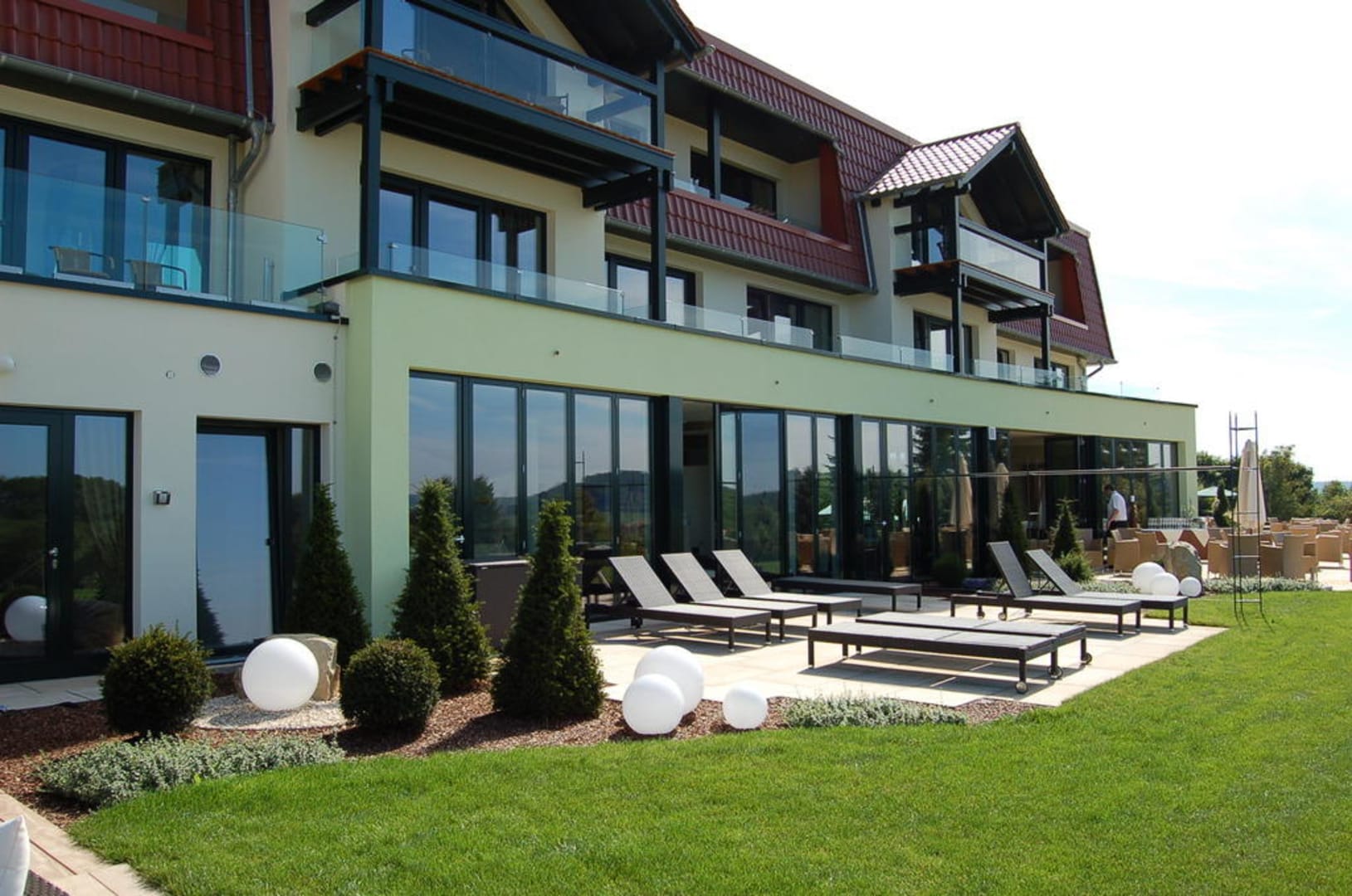 Außenbereich der Saune zwischen Lobby und Restaurant