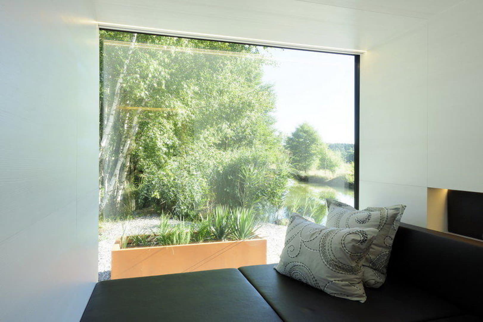 Schlafkoje mit Blick zum Teich