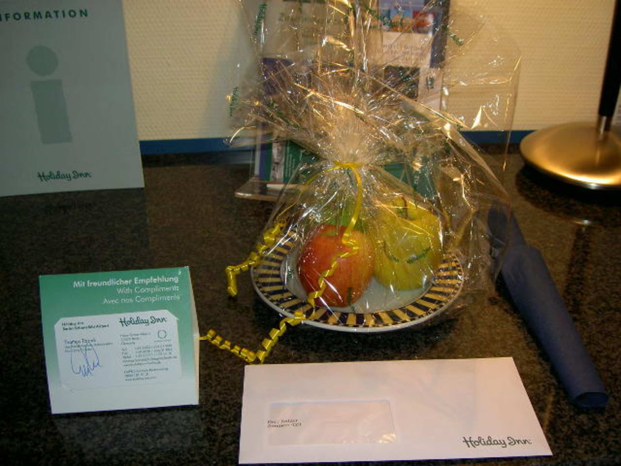 Kleines Present und Brief vom Manager für "Priority-Club" Member im Zimmer, je nach Saison was anderes. Einmal waren es Pralinen, dann ein Früchtekorb mit diversen Sachen drin und mal ein paar Äpfel.