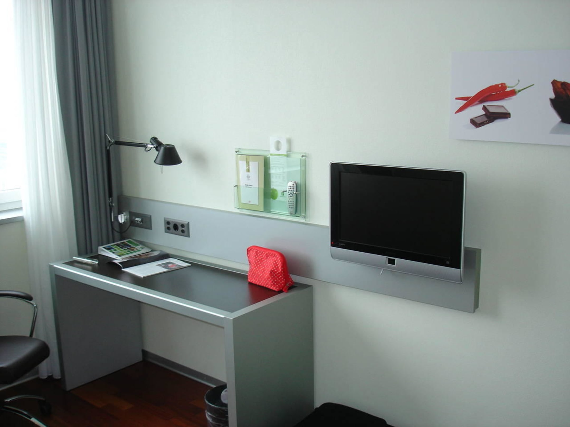 Arbeitsplatz und TV in unserem Zimmer