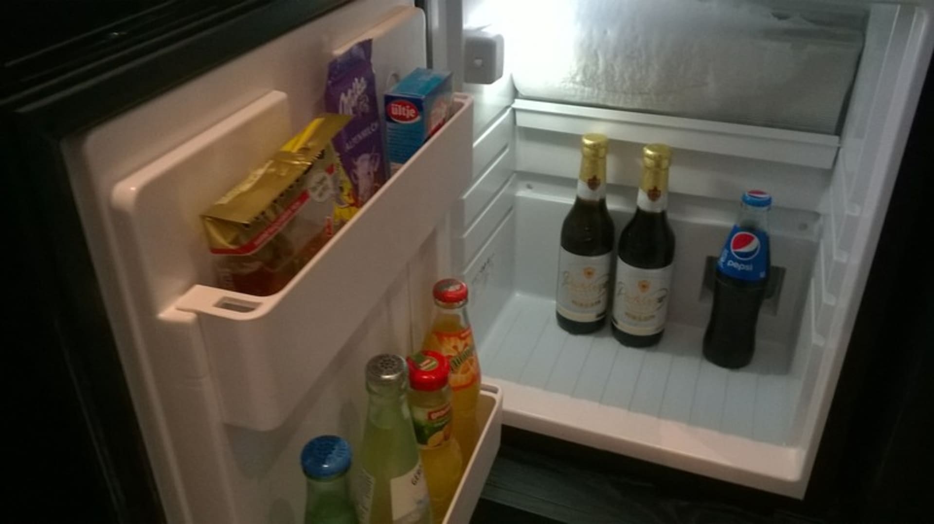Minibar. Ein Getränk und ein Snack inklusive.