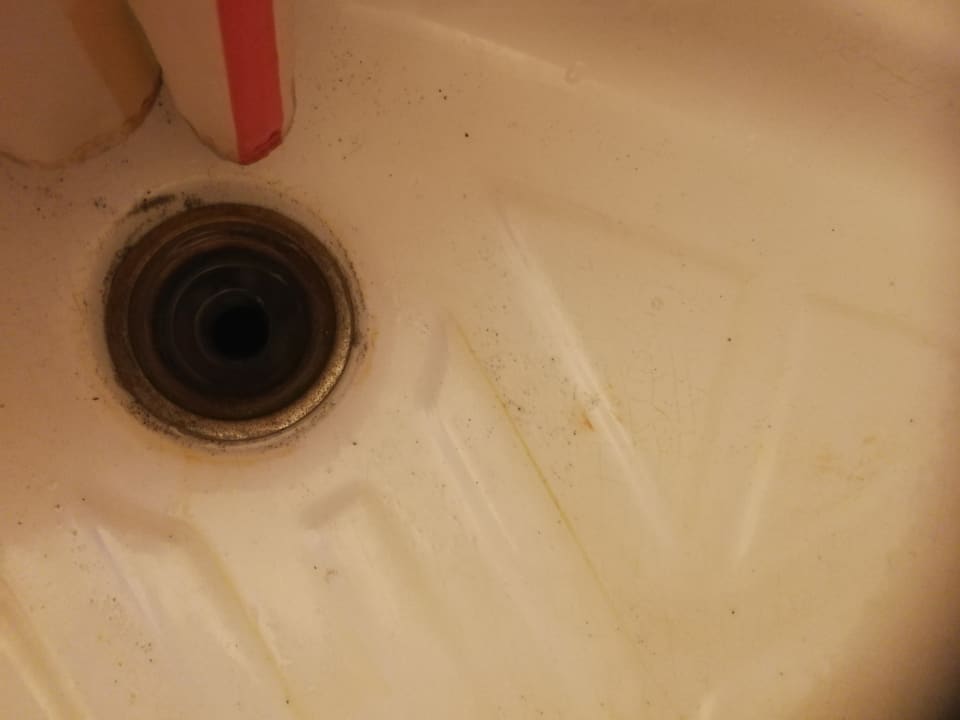 Offener Duschabfluss ohne Schutzabdeckung.