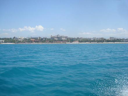 Blick vom Meer auf die Hotelanlage
