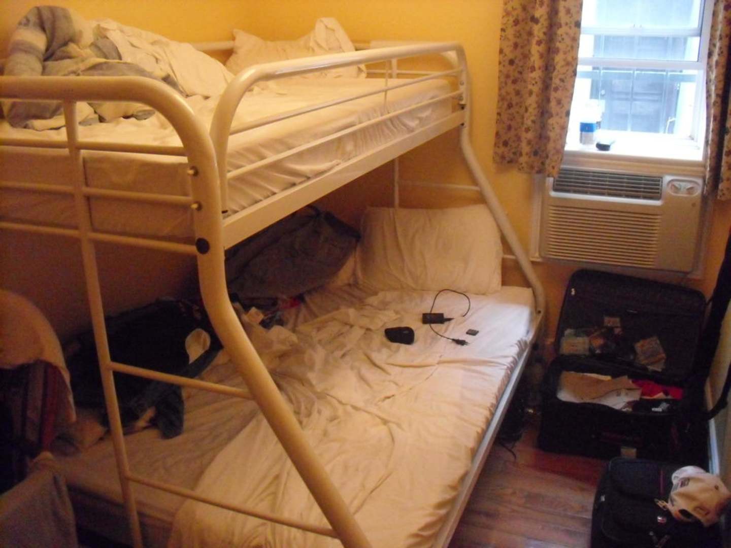 Kein Schrank, kein Waschbecken, Nur Klima und Steckdosen neben dem Metall Stockbett