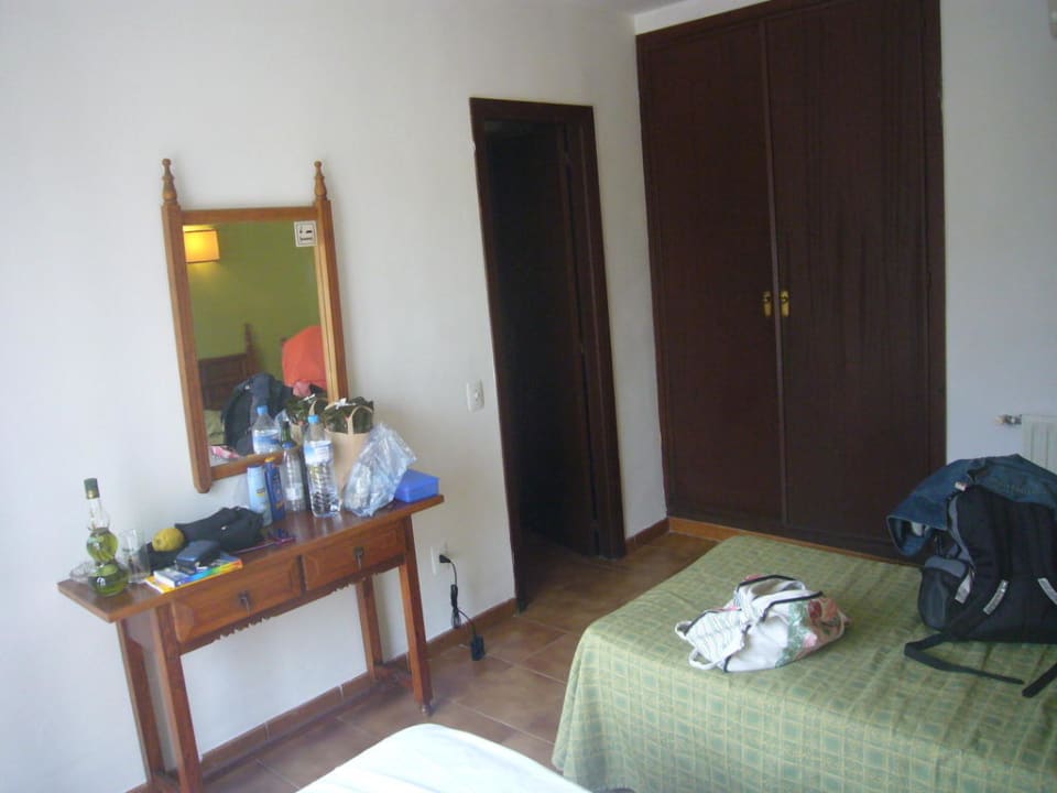 Einfachste AusstattungDZ zur Alleinbenutzung: 1 Stuhl, 2 schmale Betten (Mtetallgestell), nur 1 Bett bezogen, das andere als Ablage nutzbar, 1 kleines Tisch´chen, 1 Spiegel, 1 muffelnder Wandschrank