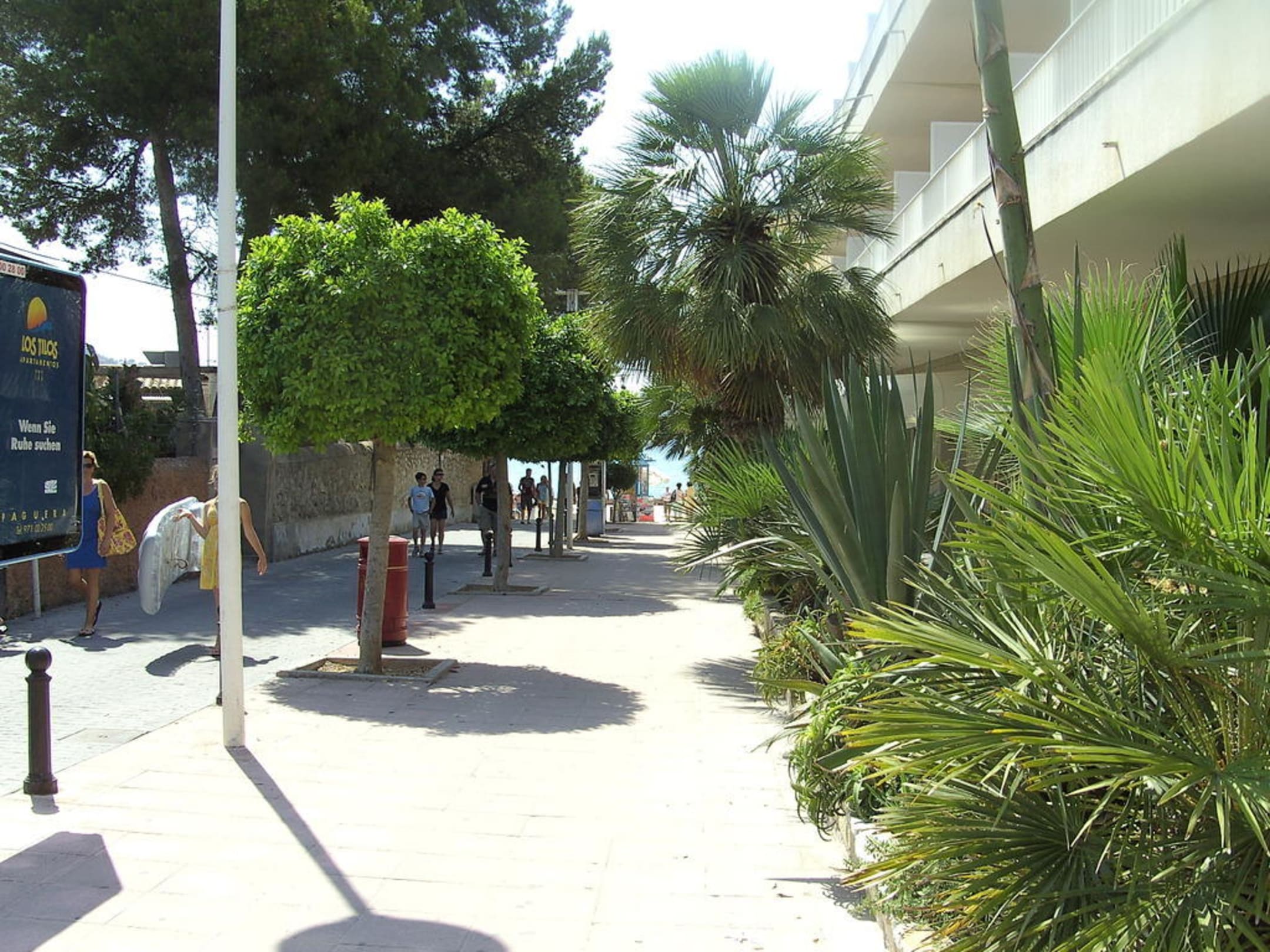 noch ca. 50 Meter. Blick vom Boulevard (direkt am Neptuno) zum Strand. Weniger als 2 Minuten Gehweg. Telefonzelle und Bootsausflugticketverkäufer auf dem Weg.