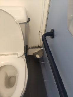 Toilette gleich gegenüber den Duschen, Geruch inklusive...
