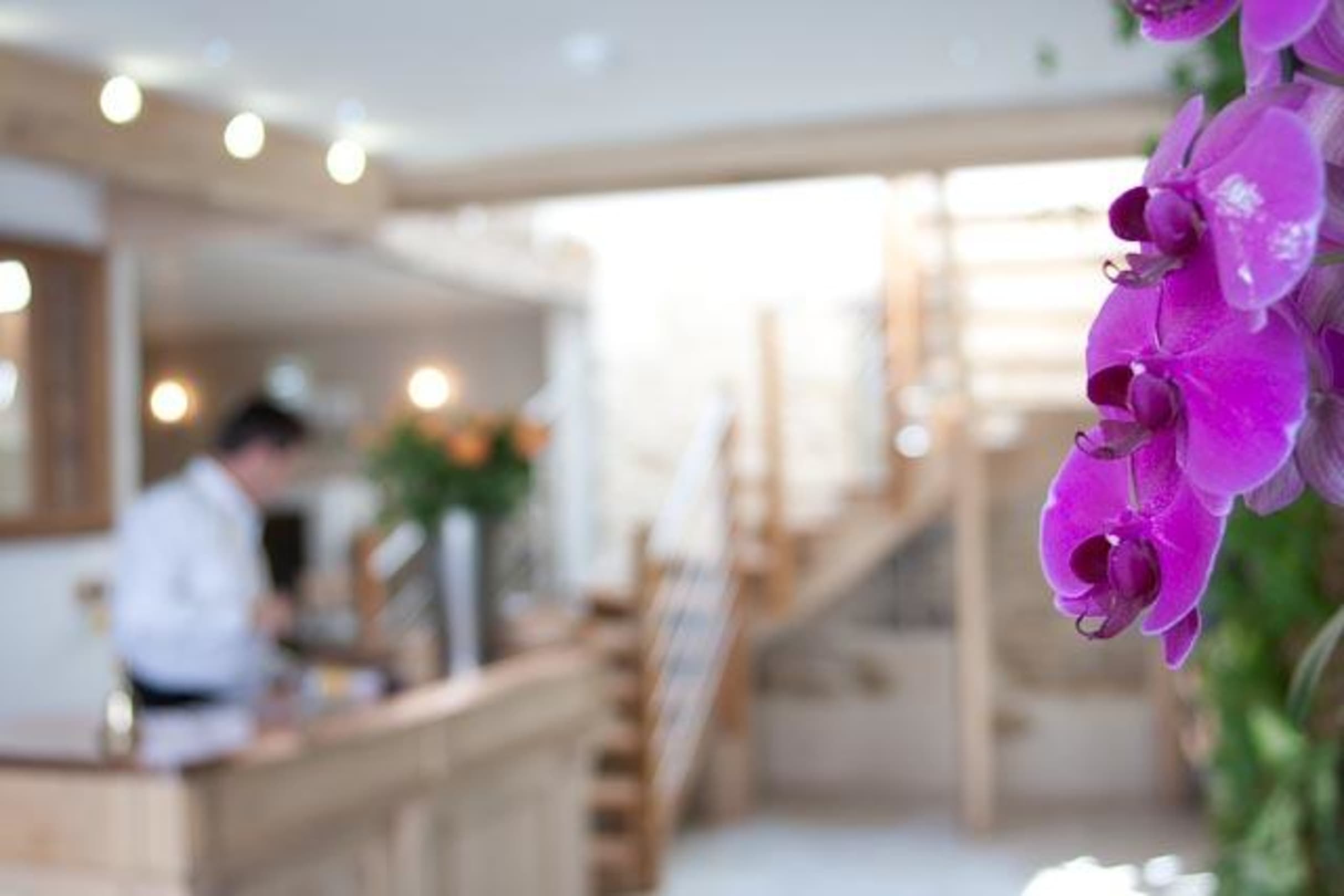 Hall d'accueil avec mur floral