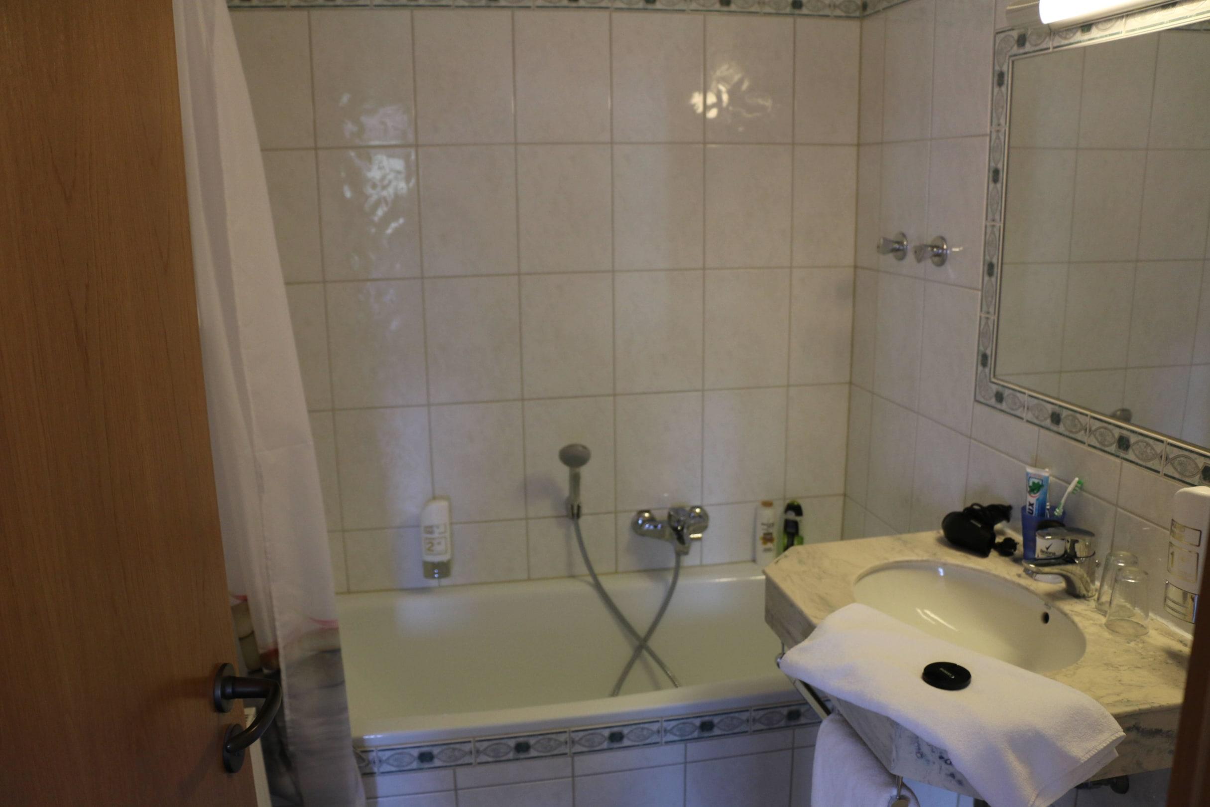 Badezimmer, kurzer Duschschlauch, kein Haltegriff