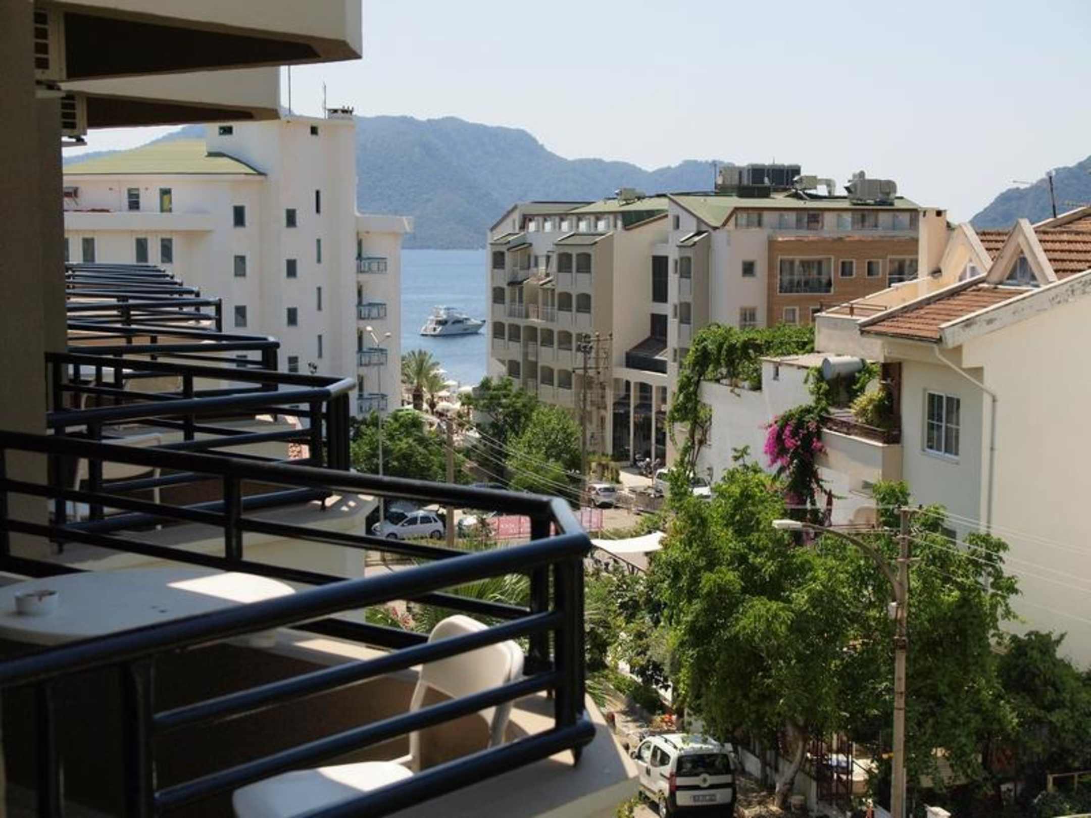 Widok z balkonu,w oddali pomiędzy hotelami zatoka