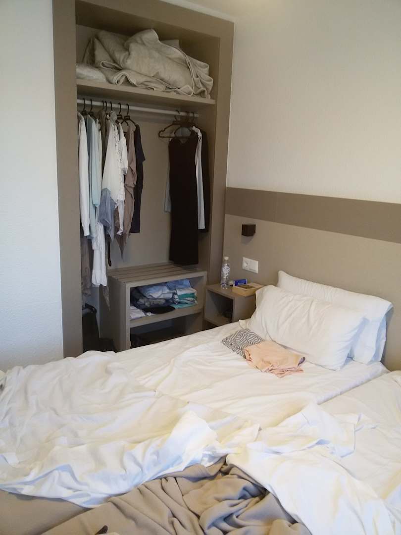 ZimmerDer Schrank für 2 Personen zu klein, wenn noch ein Kind mitreist unzumutbar. die Betten waren getrennt und "rollten", wenn man sich bewegt hat.