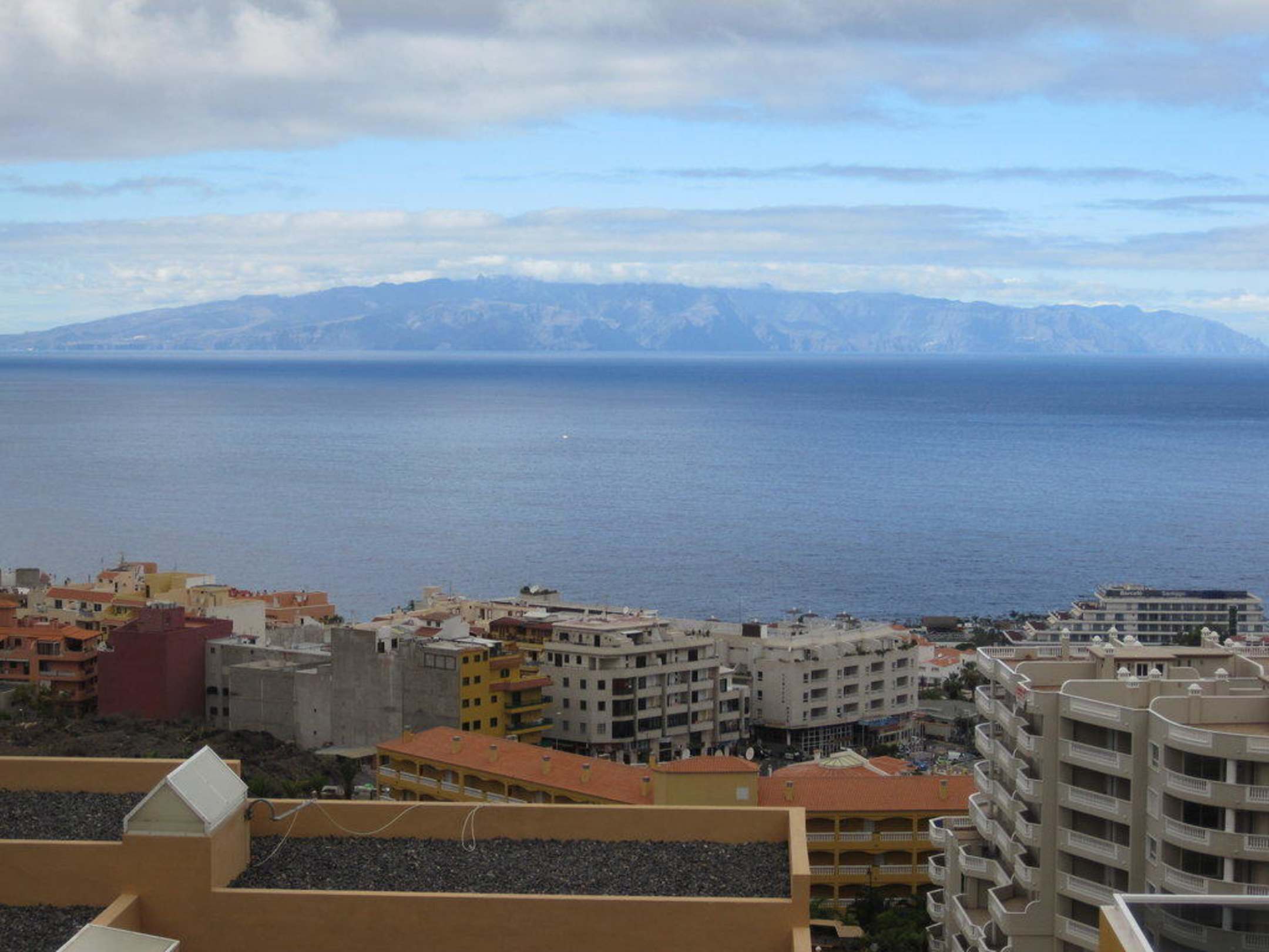 Ausblick von der Hotelterrasse auf die Insel Gomera