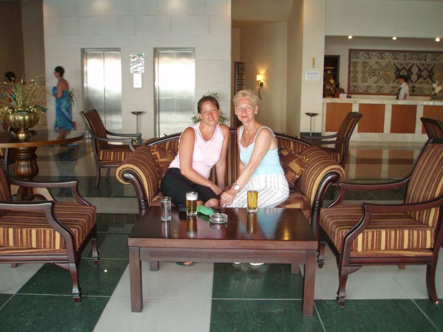 In der Hotelhalle, im Hintergrund links sieht man die Aufzüge und rechts die Rezeption!