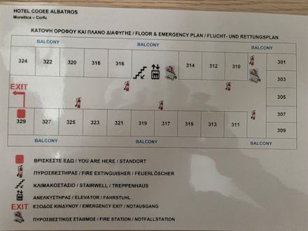 Zimmer 301 und folgende haben Blick auf den Pool und Meer. Also ganz vorne