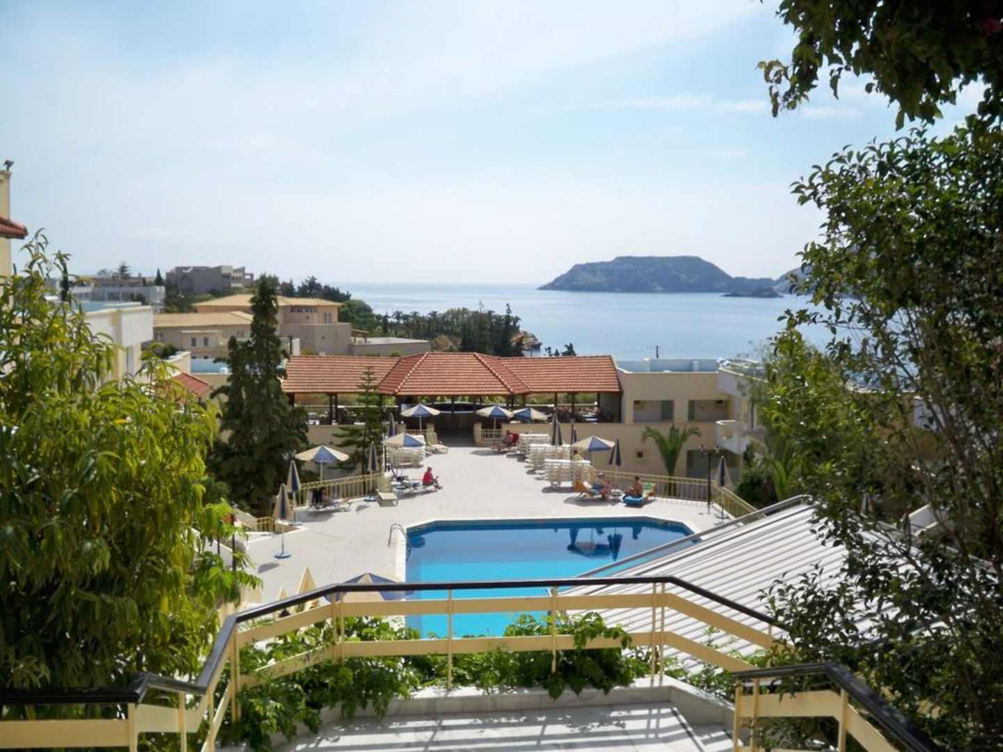 Blick von der Treppe auf die Poolanlage