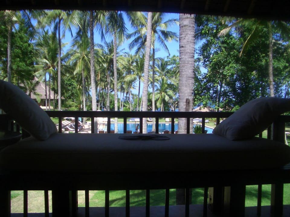 Blick vom Balkon (1. Stock) in den Garten (Pool). Eine Sensation