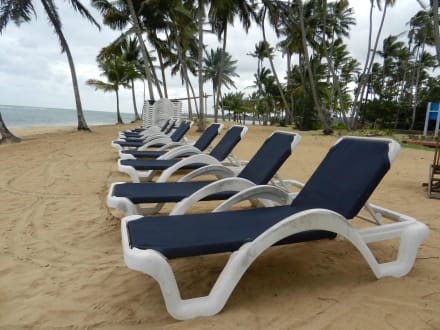 Liegen am hoteleigenen Strand über die Strasse