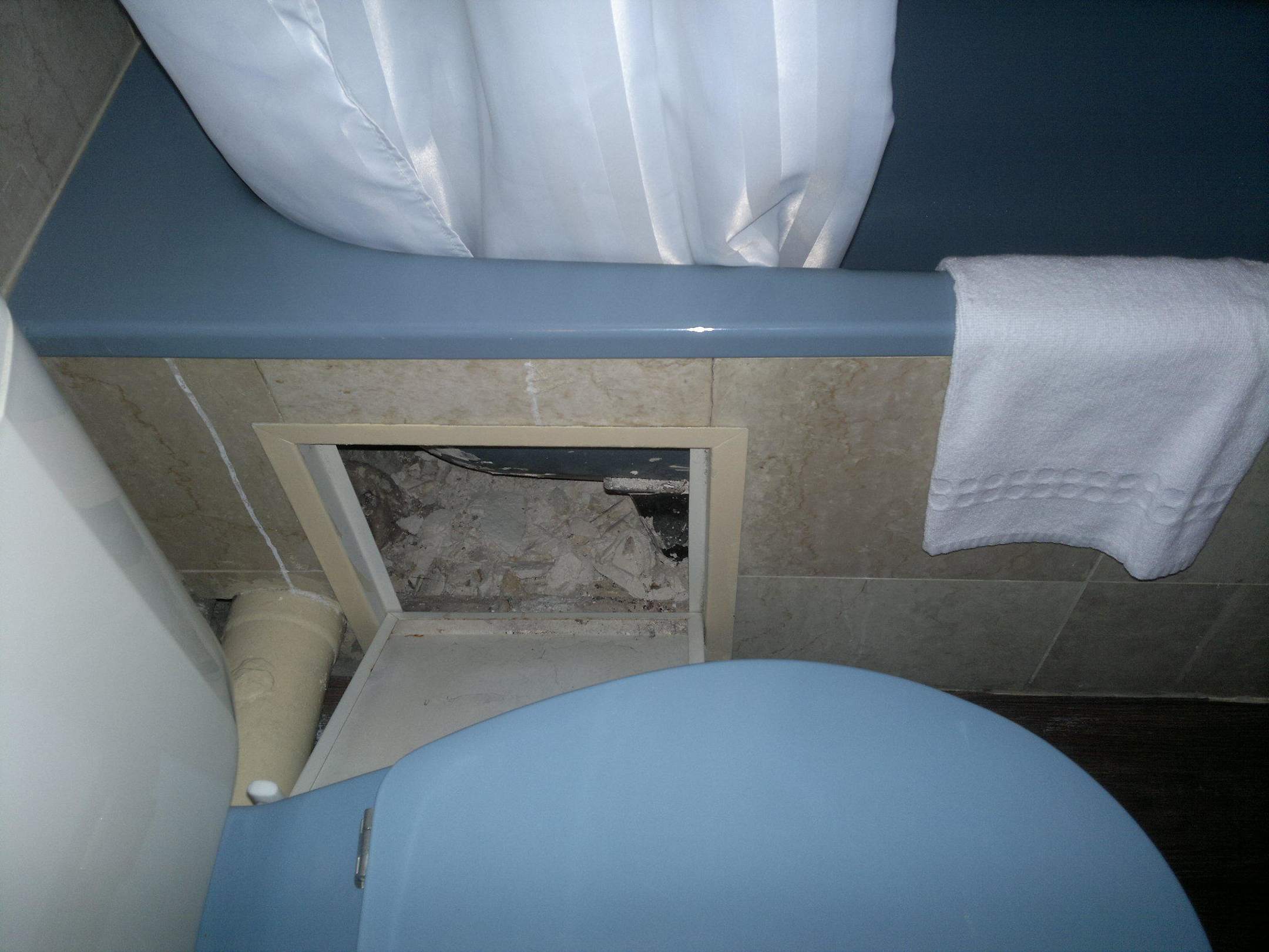 Revisionsklappe war offen, Blick auf den darin befindlichen Bauschutt unvermeidbar...