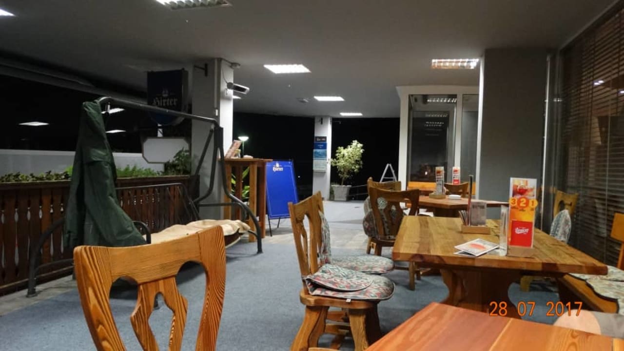Możliwośc odpoczynku przy stolikach przed wejściem